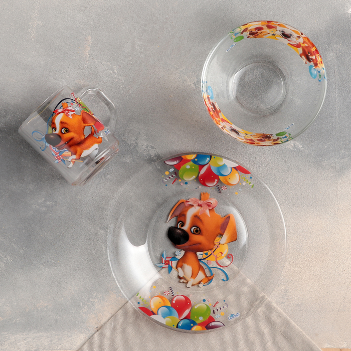 Набор посуды "Озорная семейка. Кокетка Дина", 3 предмета: тарелка 19 см, кружка 210 мл, салатник 13 см 250 мл