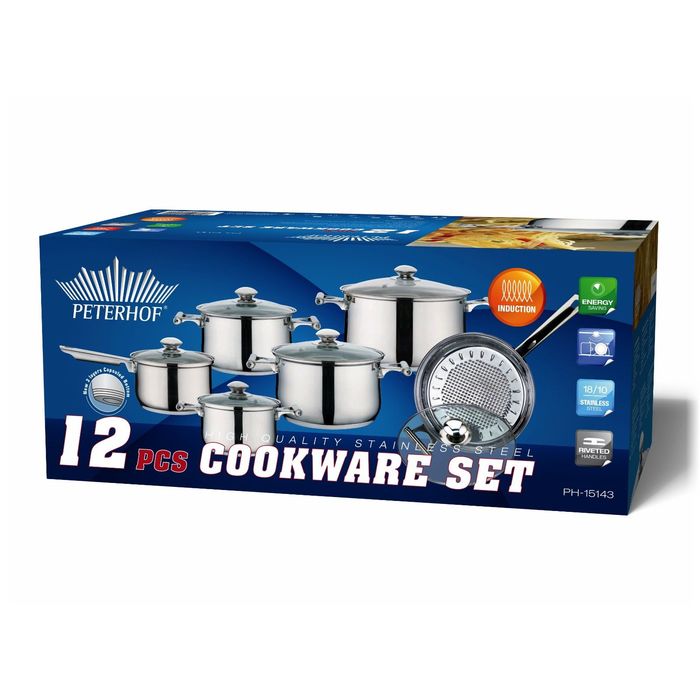 От качества посуды зависит не только вкус еды, но и здоровье человека. Набор посуды PETERHOF с крышками: ковш 2,2 л, кастрюля 2,2 л, 3 л, 4 л, 6,5 л, сковорода, покрытие Xytan, 24 см — товар, соответствующий российским стандартам качества. Любой хозяйке будет приятно держать его в руках. С нашей посудой и кухонной утварью приготовление еды и сервировка стола превратятся в настоящий праздник.