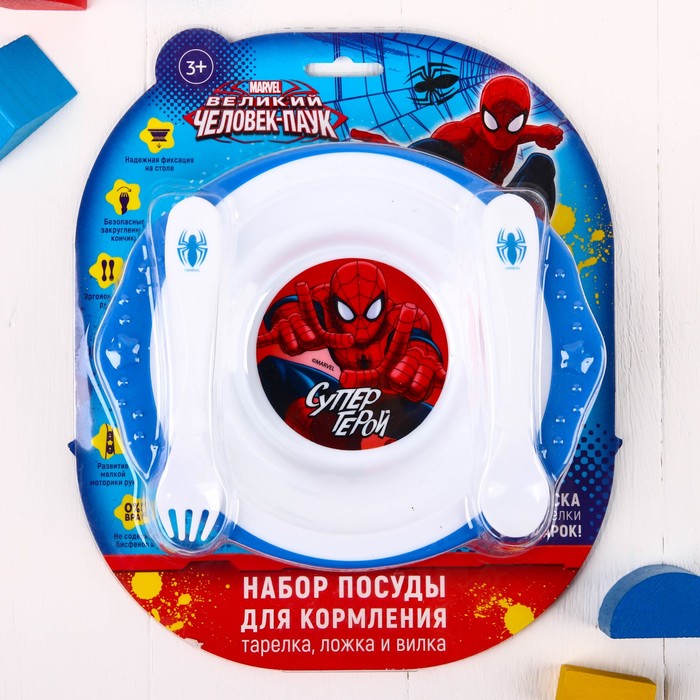 Набор посуды "Супергерой" Человек-паук, тарелка на присоске, вилка, ложка
