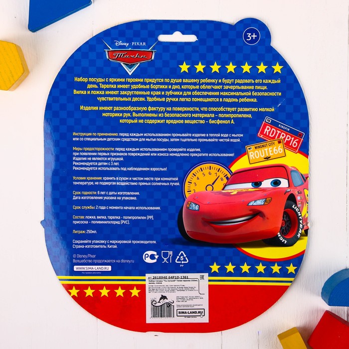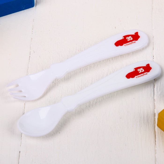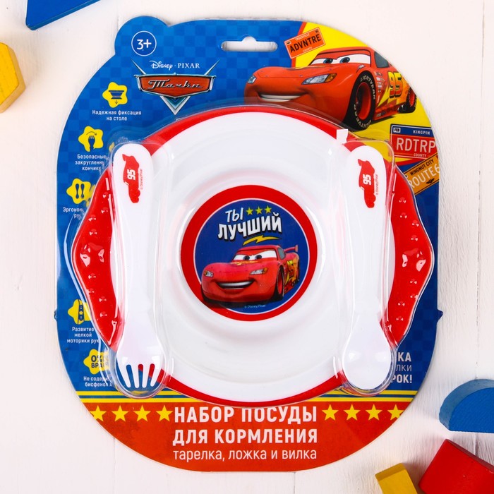 Набор посуды "Ты лучший" Тачки, тарелка на присоске, вилка, ложка
