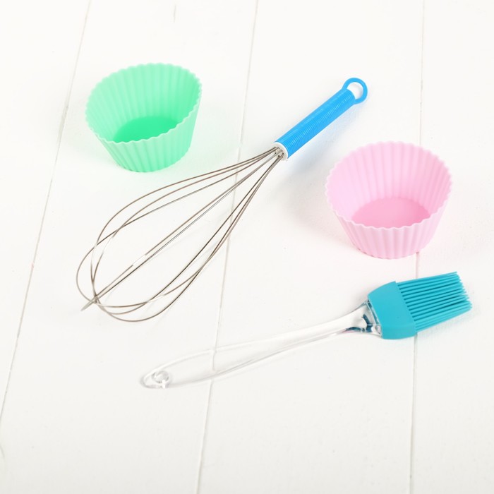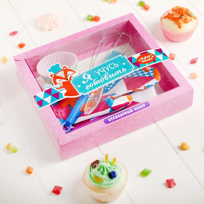 Набор поварёнка: фартук, две прихватки, формочка, венчик, кисть кулинарная