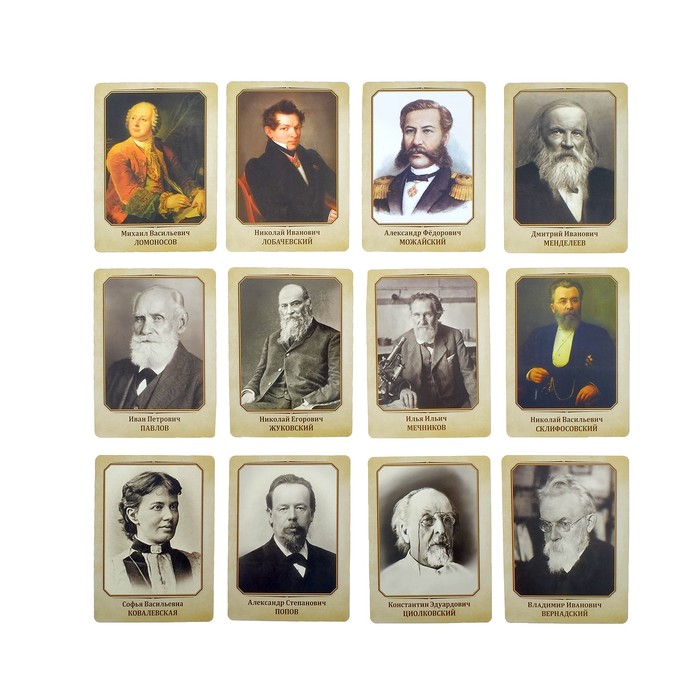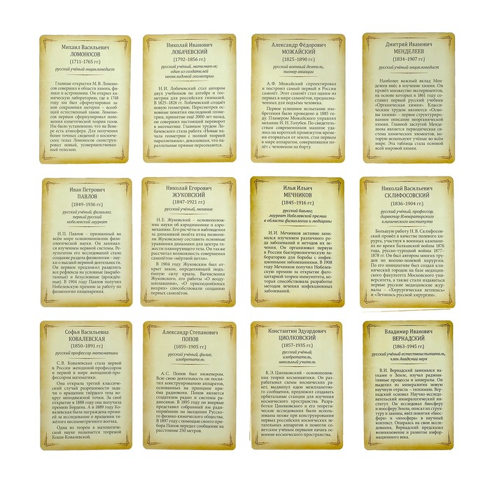 Набор познавательных карточек 12 шт "Великие русские ученые"