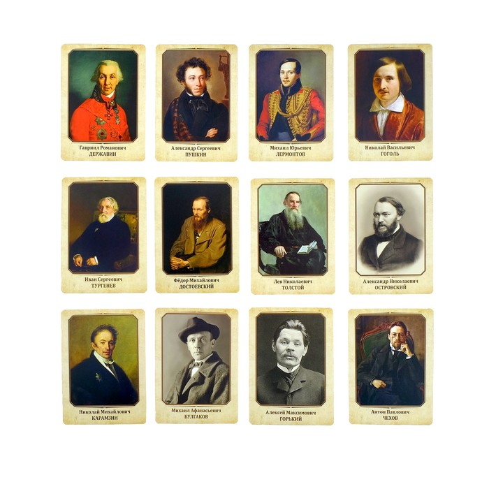 Набор познавательных карточек "Великие русские писатели", 12 шт.
