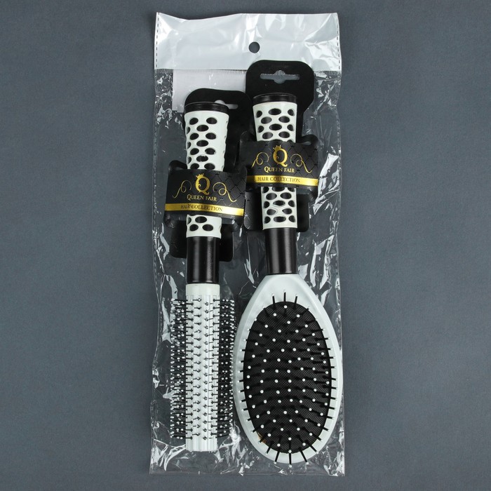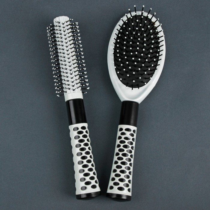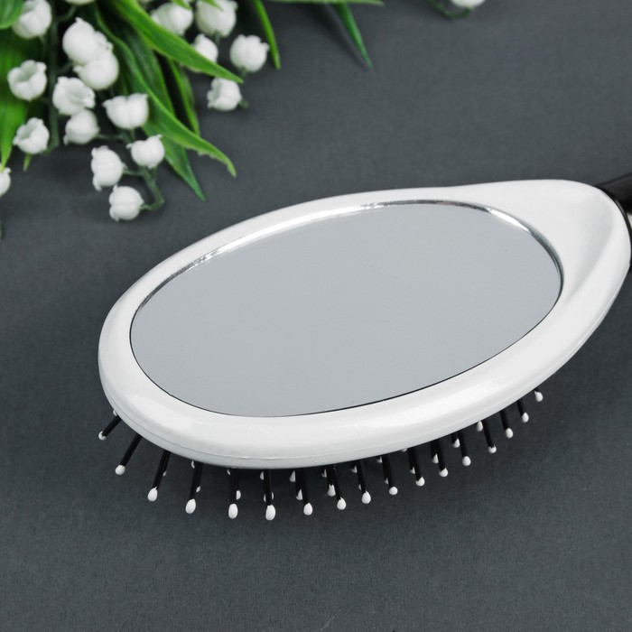 Набор расчёсок, 2 предмета: брашинг, массажная расчёска с зеркалом, 24см, цвет чёрный/белый