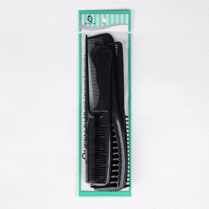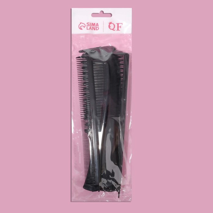 Набор расчёсок, 6 предметов: комбинированные-2шт, с хвостиком и с ручкой-2шт, 21(±1)см, цвет чёрный