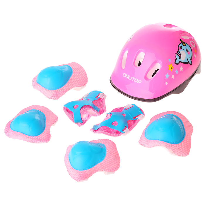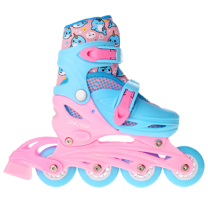 Набор Ролики раздвижные + Защита, колеса PVC 64 мм, пластиковая рама, blue/pink р.34-37