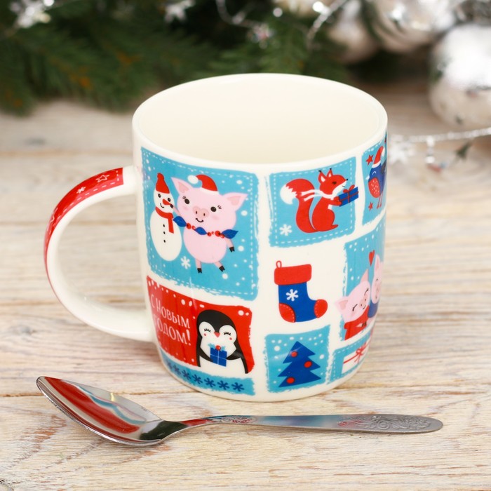 Набор "С Новым счастьем", кружка 350 мл, ложка