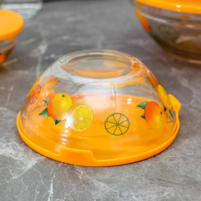 Набор салатников с крышками "Апельсин", 5 шт: 130/200/350/500/900 мл, цвет оранжевый