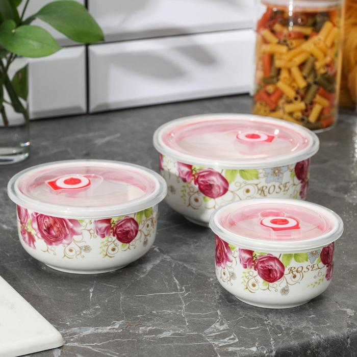 Набор салатников с вакуумными крышками 3 шт "Розалинда" (350, 600, 1000 мл) d=16/14/10/ см