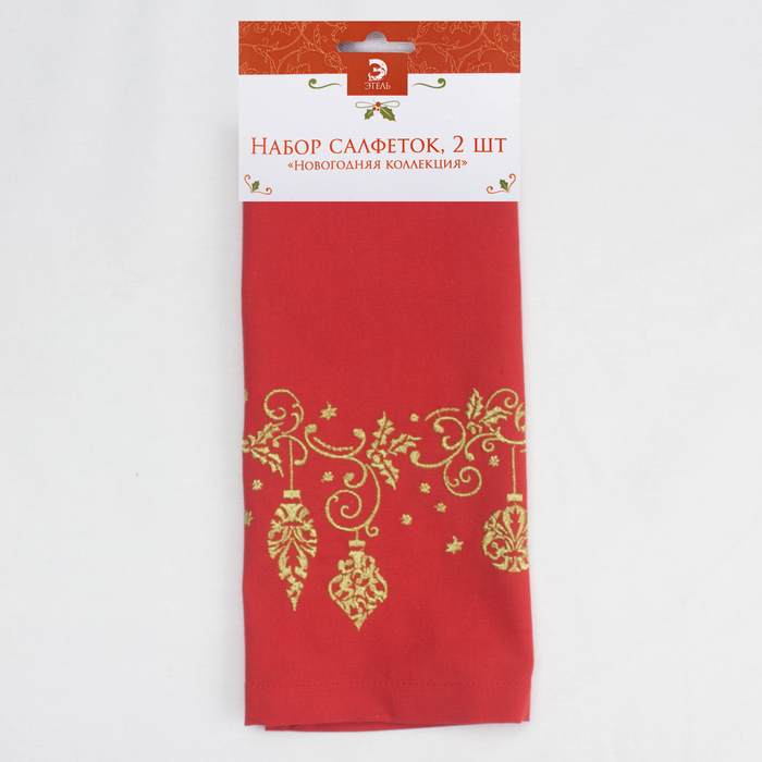 Набор салфеток "Этель" Гирлянда, 40х40 цвет красный, 2 шт, с ВМГО хл, 200 гр/м²