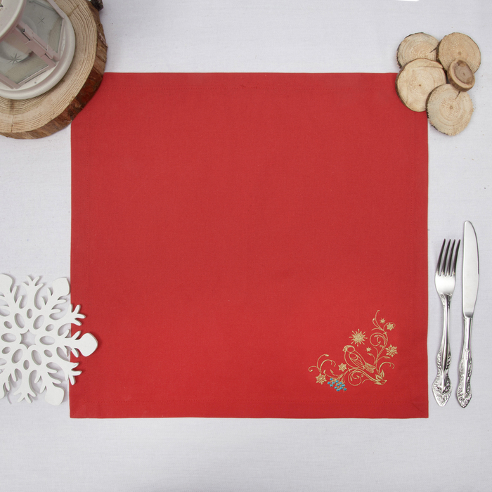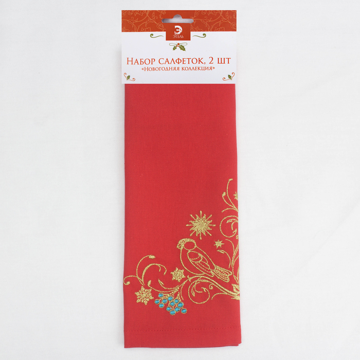 Набор салфеток "Этель" Снегири, 40х40 цвет красный, 2 шт, с ВМГО хл, 200 гр/м²
