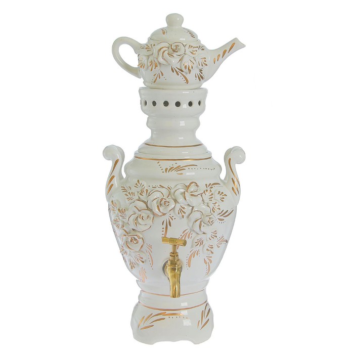 Набор самовар и чайник, лепка, белый 4 л и 0,5 л, провод не прилагается