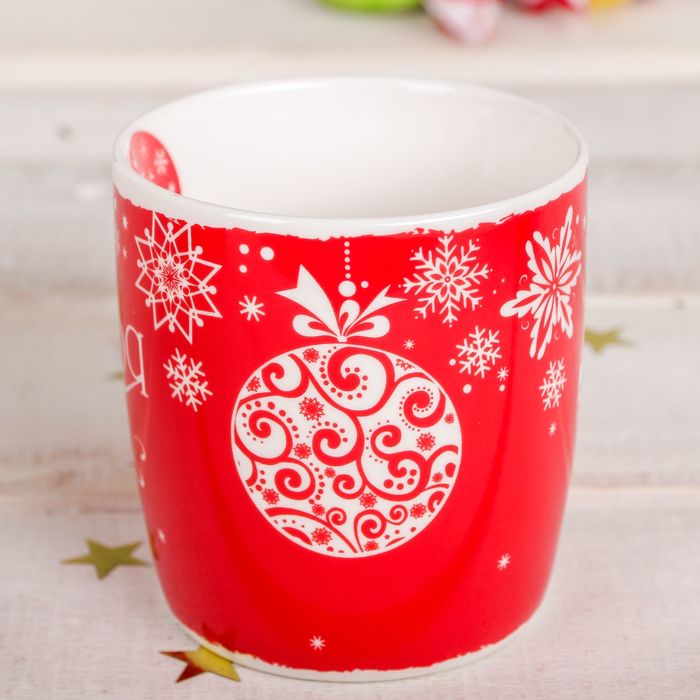 Такой набор — универсальный подарок на Новый год! Яркие краски и весёлые изображения будут долго радовать получателя. Стильный зимний рисунок нанесён на ручку и внутреннюю стенку кружки.