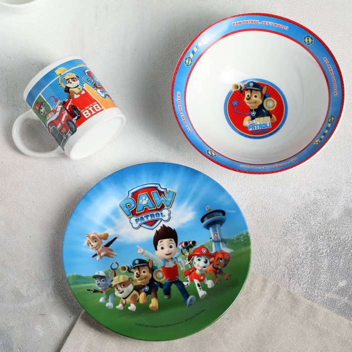 Набор "Щенячий патруль", 3 предмета: кружка 240 мл, миска 18 см (750 мл), тарелка 19 см
