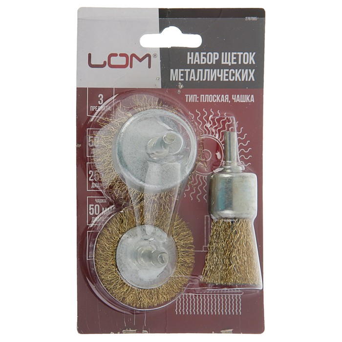 Набор щеток металлических LOM для дрели 3 пр. 50 мм плоская, 25, 50 мм чашки