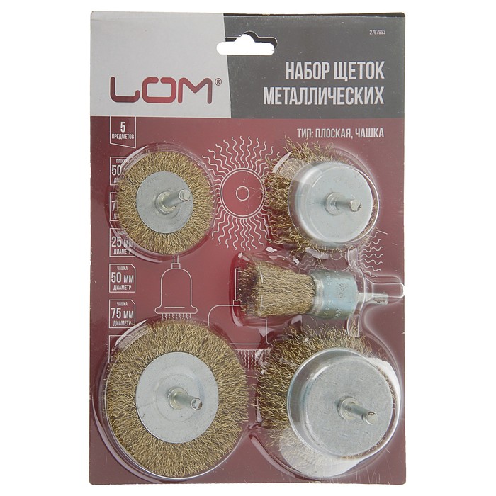 Набор щеток металлических LOM для дрели 5 пр. 50, 75 мм плоские, 25, 50, 75 мм чашки