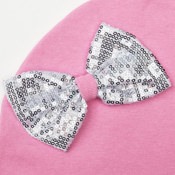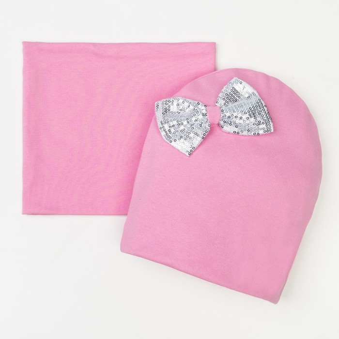 Набор шапка/снуд с бантом из пайеток, розовый, р-р 46/50 см