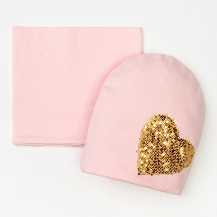 Набор шапка/снуд с сердцем из пайеток, св.розовый, р-р 50/54 см