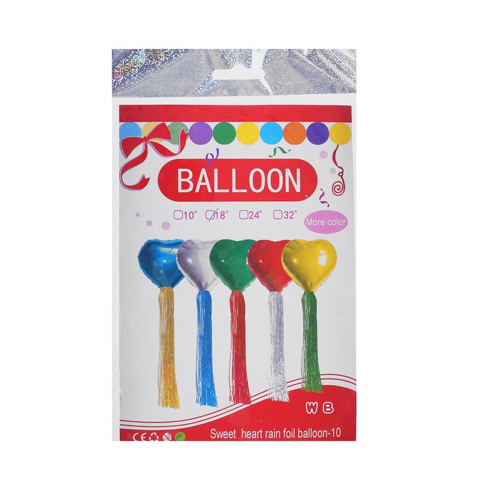 Набор "Шар 18" и лента фольга" красный, сердце, 2 шт
