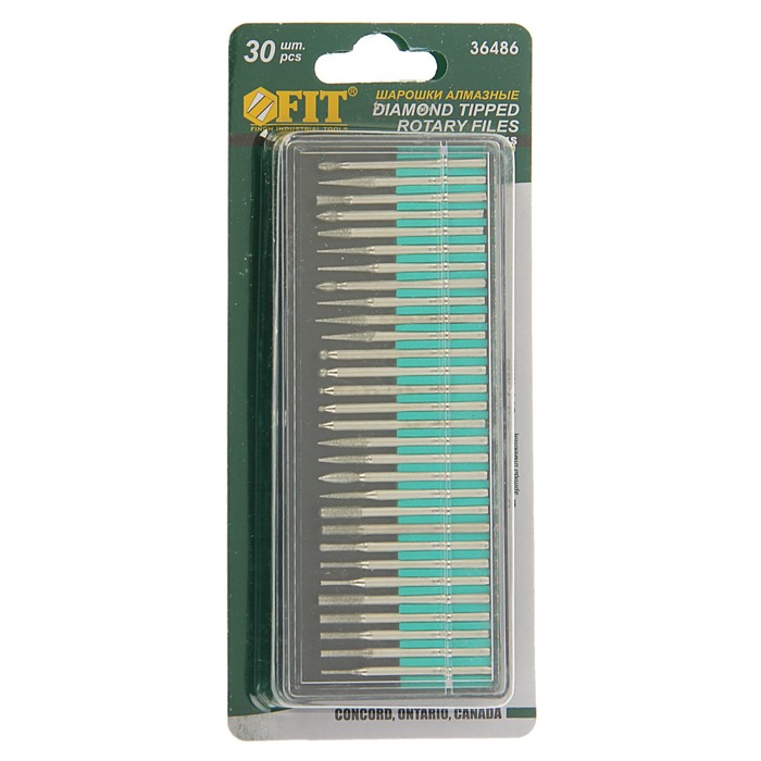 Набор шарошек FIT, усиленная сталь с алмазным напылением, штифт 3 мм, 30 шт.
