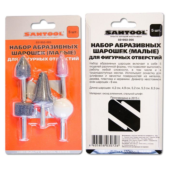 Набор шарошек SANTOOL абразивных для фигурных отверстий 5 шт.(малые)