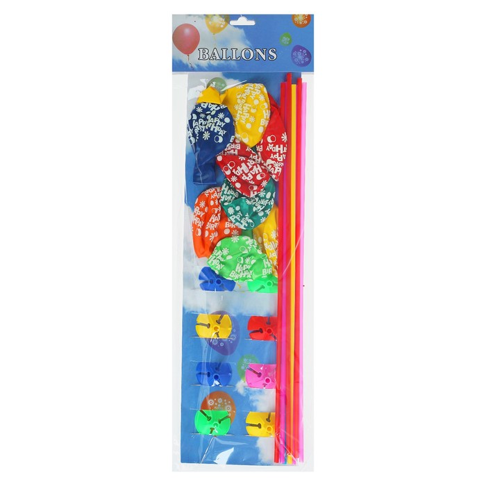 Набор шаров латексных 12" "С Днем рождения" цветы, палочки, держатели, 8 шт