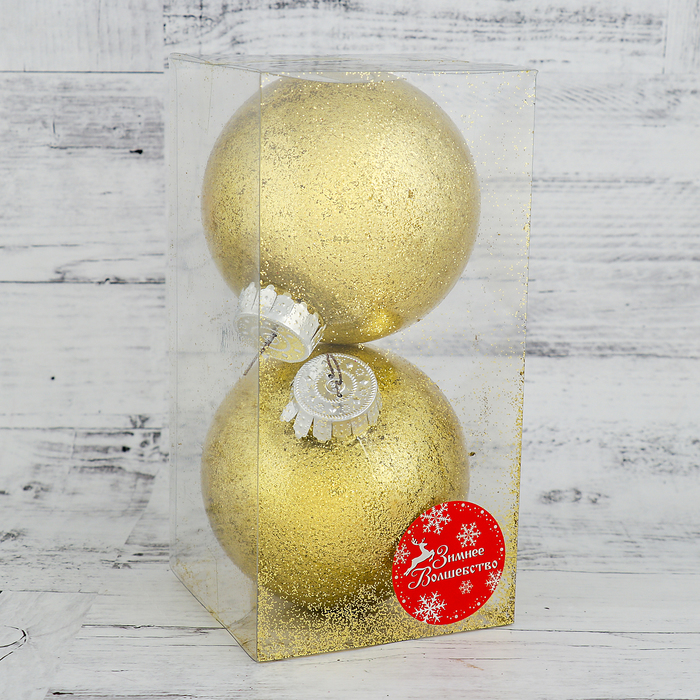 Набор шаров пластик 2 шт d-10 см "Блестки" золото