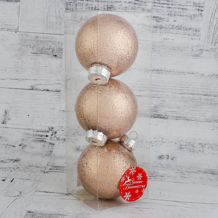 Набор шаров пластик 3 шт d-8 см "Блестки" бежевое золото