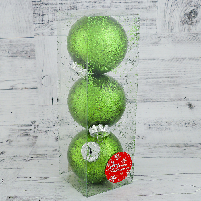 Набор шаров пластик 3 шт d-8 см "Блестки" зеленый