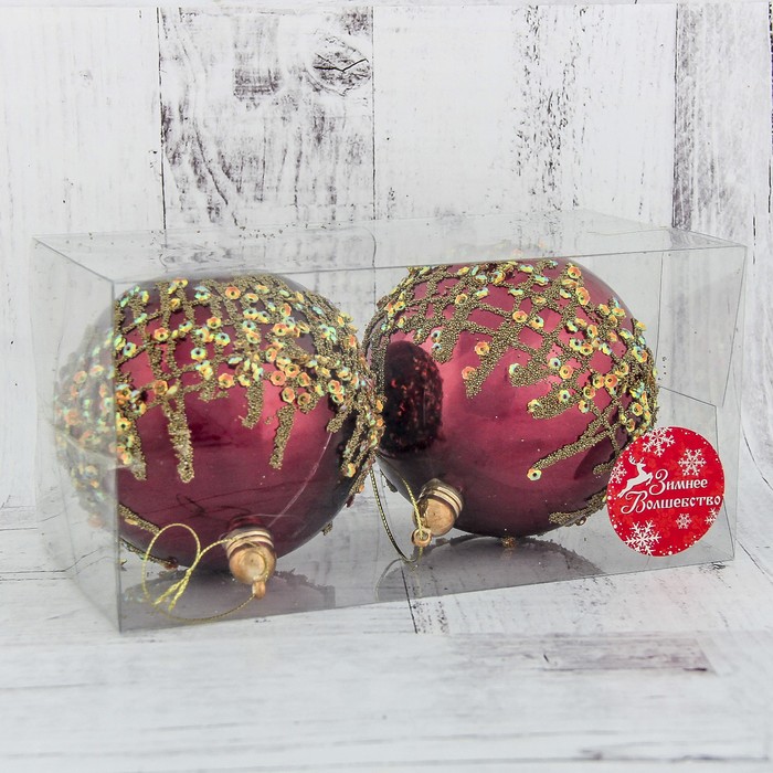 Набор шаров пластик d-10 см 2 шт "Меланта" бордо