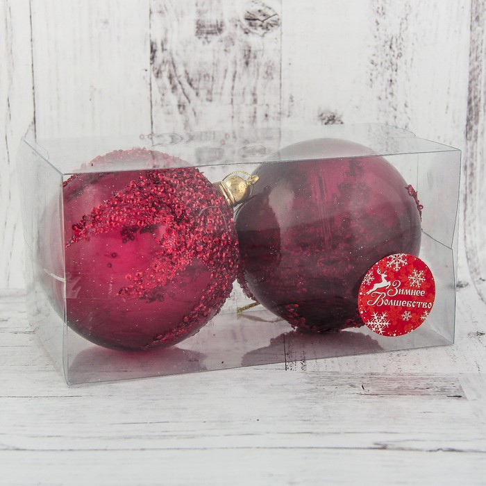 Набор шаров пластик d-10 см 2 шт "Сапфеир" бордо