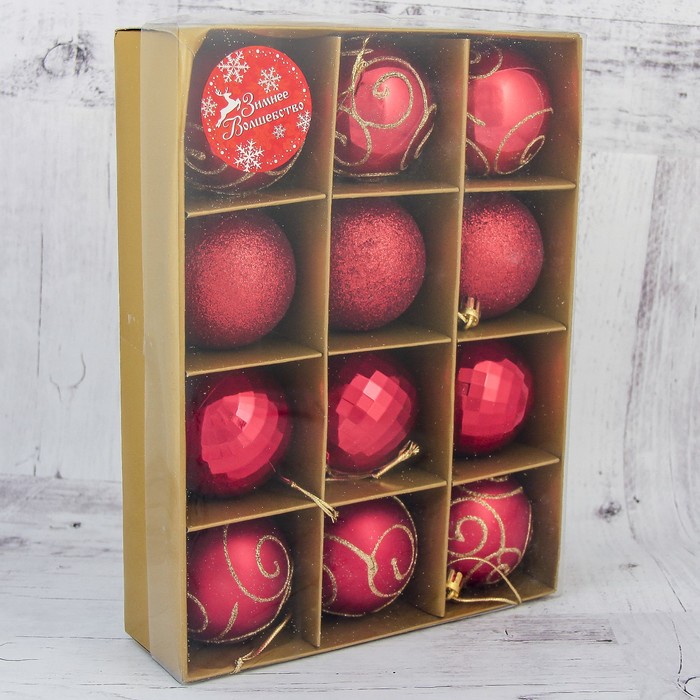 Набор шаров пластик d-5,5 см 12 шт "Перелив" красный