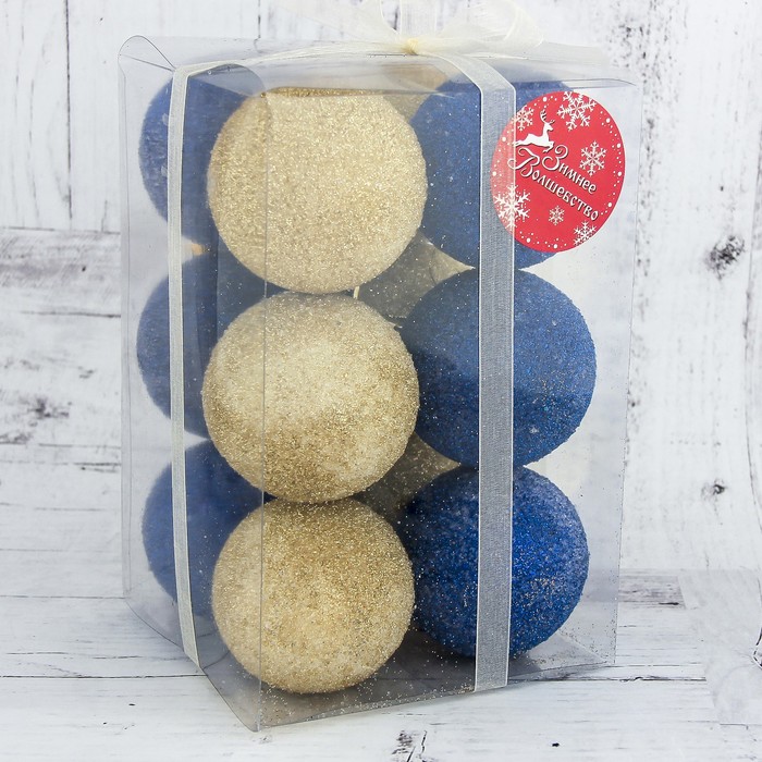 Набор шаров пластик d-6 см 12 шт "Сахарная пудра" синий,золото