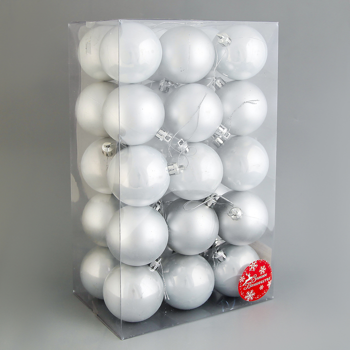 Набор шаров пластик d-6 см 30 шт "Банафрит" серебро