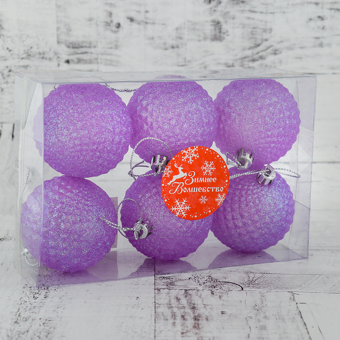 Набор шаров пластик d-6 см 6 шт "Блеск рельеф" фиолет