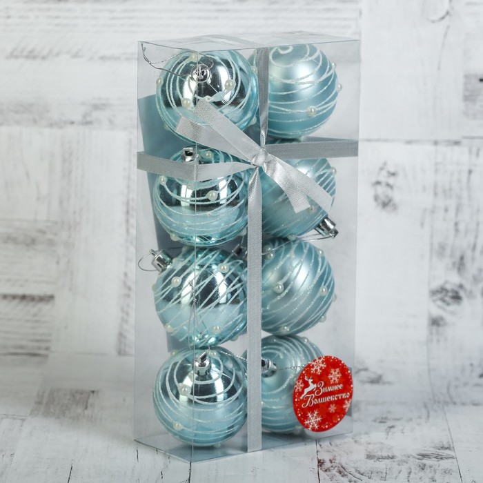 Набор шаров пластик d-6 см 8 шт "Жемчужный орион" голубой