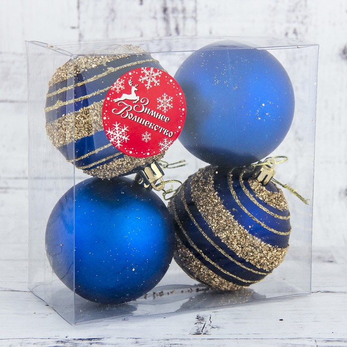 Набор шаров пластик d-7 см 4 шт "Совершенство" синий