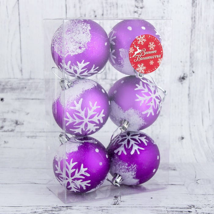 Набор шаров пластик d-7 см 6 шт "Цветной иней" фиолет