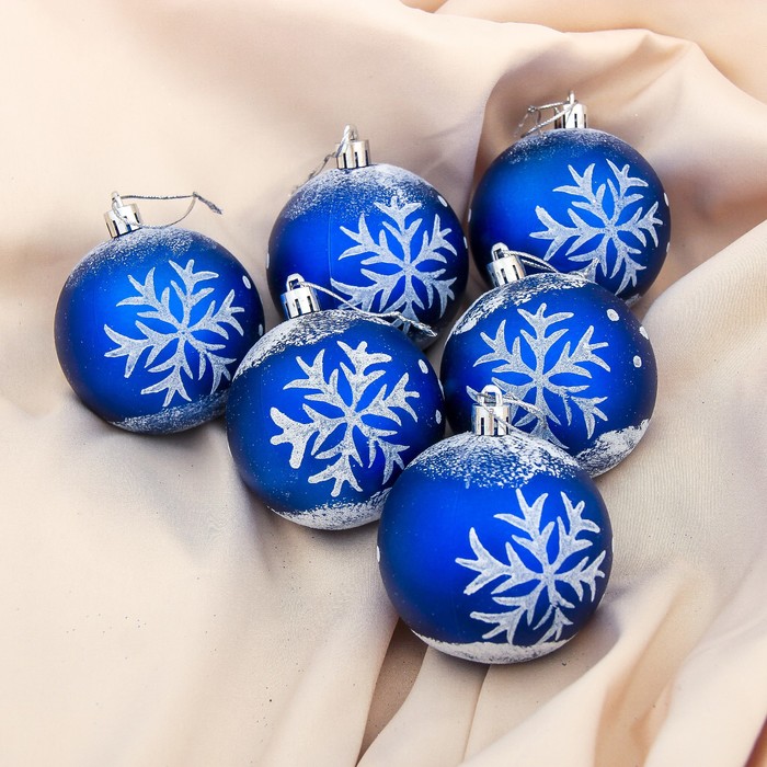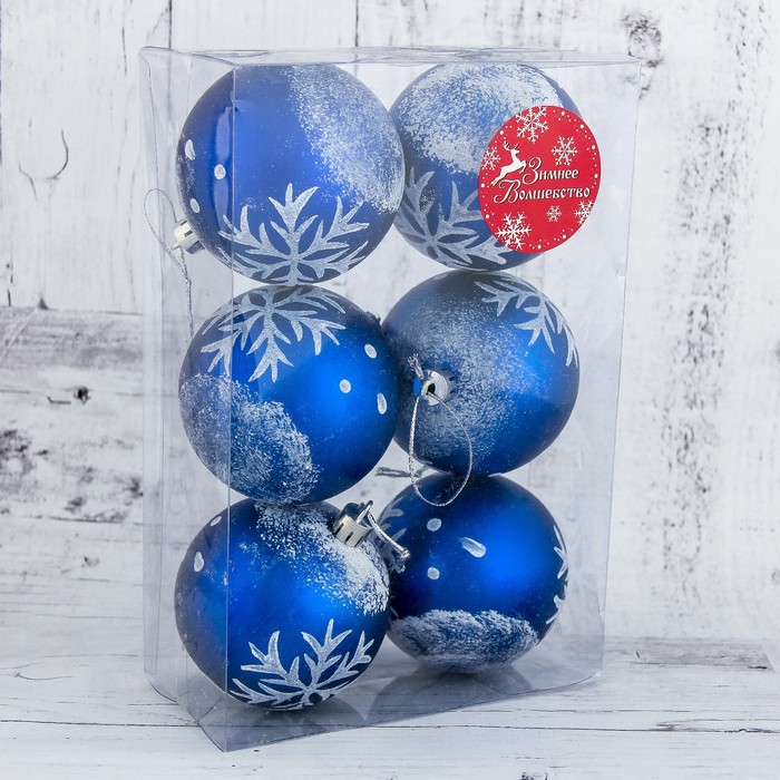 Набор шаров пластик d-7 см 6 шт "Цветной иней" синий