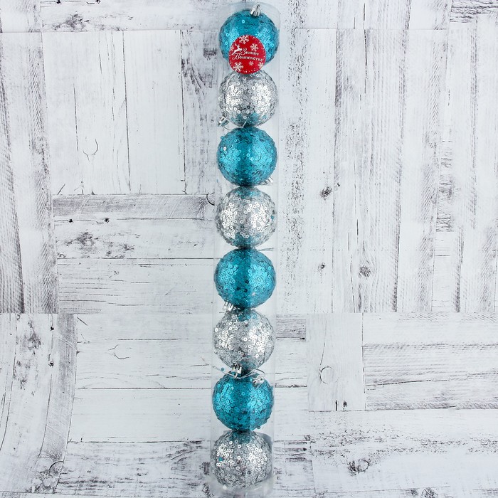 Набор шаров пластик d-7 см 8 шт "Ностальгия" бело синий