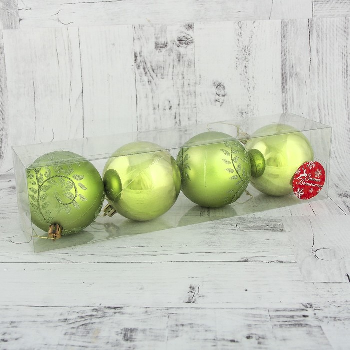 Набор шаров пластик d-8 см 4 шт Солнечный" зеленый