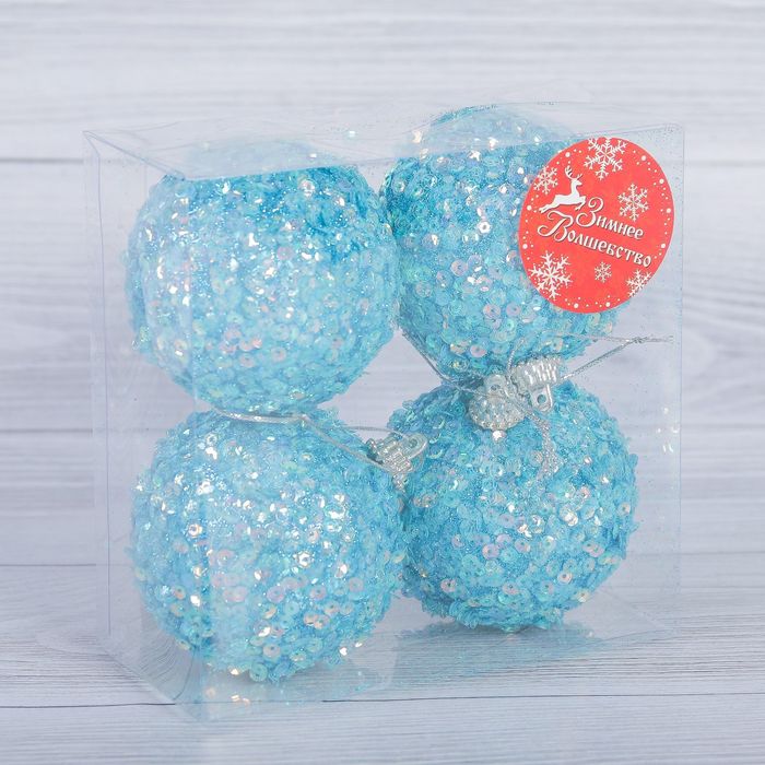 Набор шаров пластик "Голубой блеск" d-7 см 4 шт