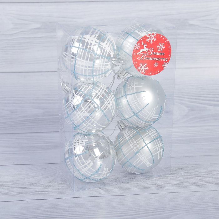 Набор шаров пластик "Клеточка" d-6 см 6 шт серебро