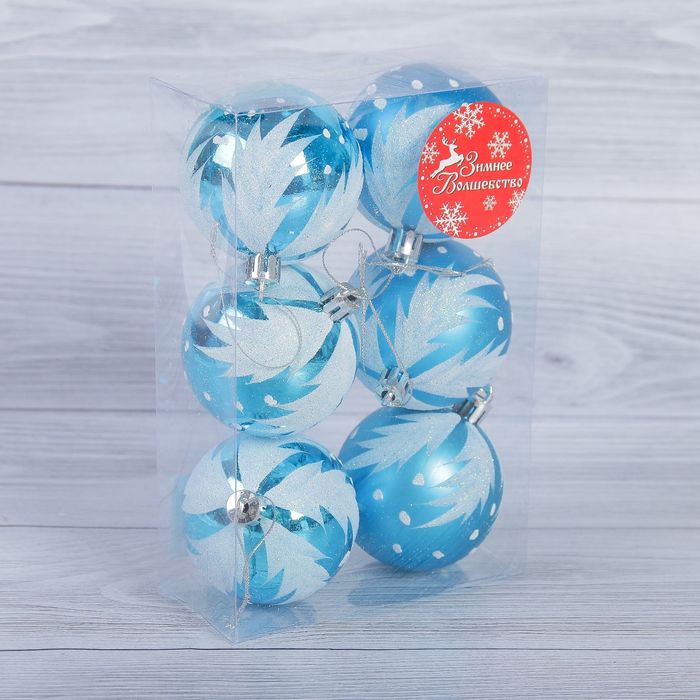 Набор шаров пластик "Перо" d-6 см 6 шт голубой