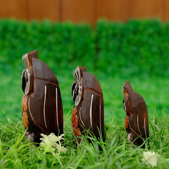 Не так давно в Индонезии обнаружили новый уникальный вид сов-эндемиков, которые обитают только на острове Ломбок. Индонезийские мастера решили создать целое семейство этих «новоиспеченных» птиц. Благодаря такому сувениру - эти "совушки" могут перекочевать с острова прямо к Вам.