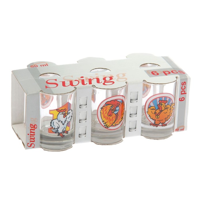 Набор стопок 50 мл "Петух-чемпион", 6 шт, рисунок МИКС