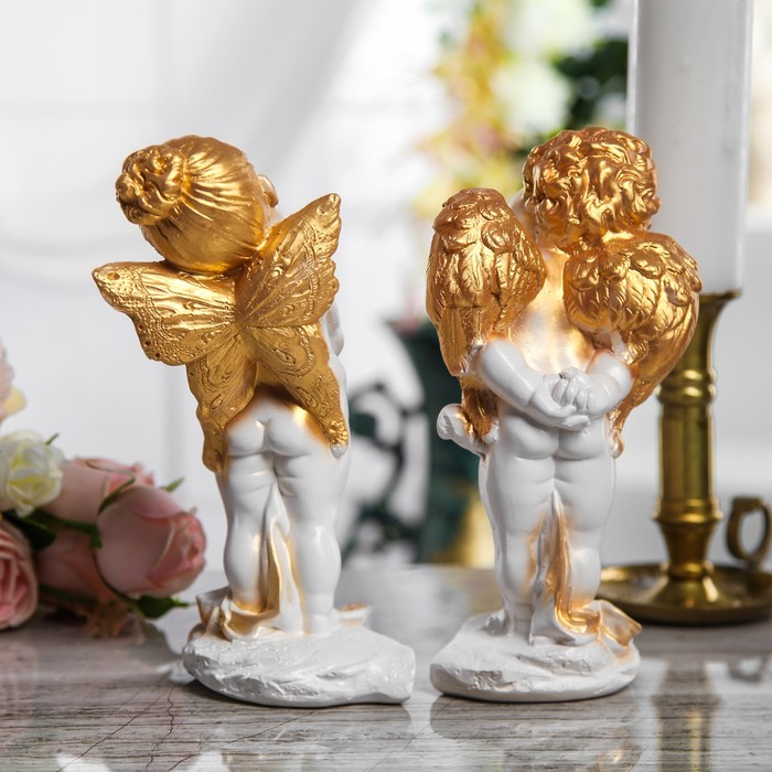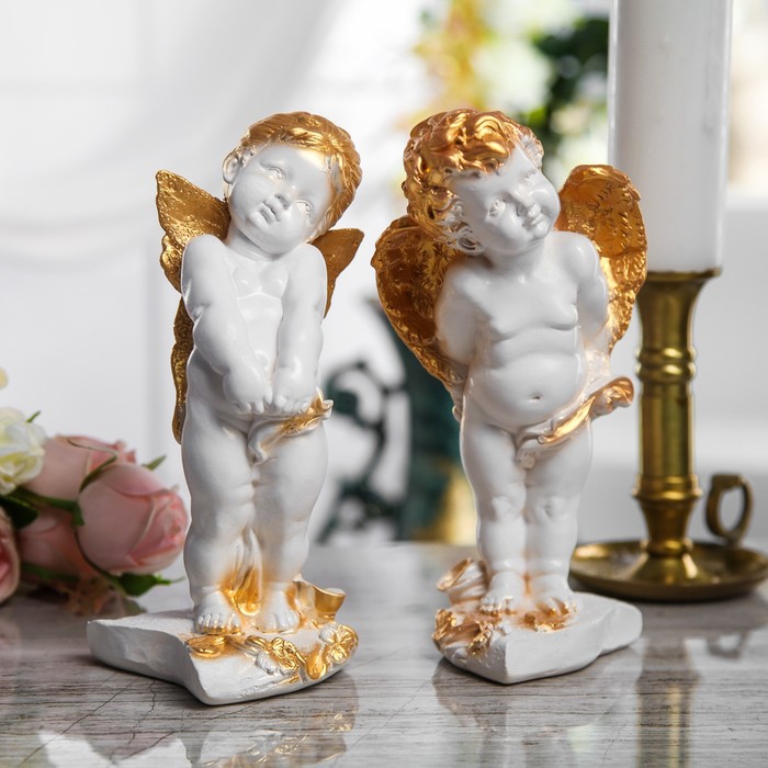 Набор сувениров "Ангелы пара" 2 шт., малый, бело-золотой