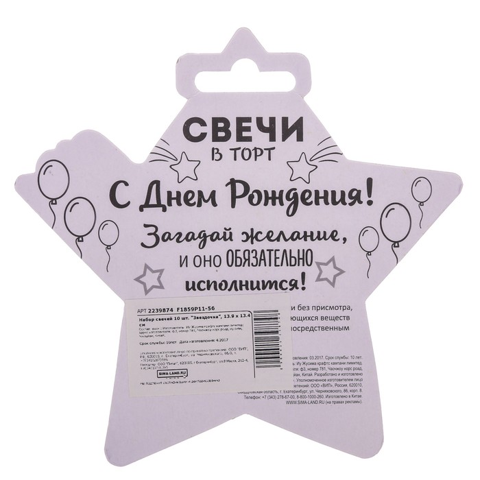 Набор свечей 10 шт. "Звездочка" — непременный атрибут праздника, который бывает раз в году! Он обязательно поднимет настроение виновнику торжества.