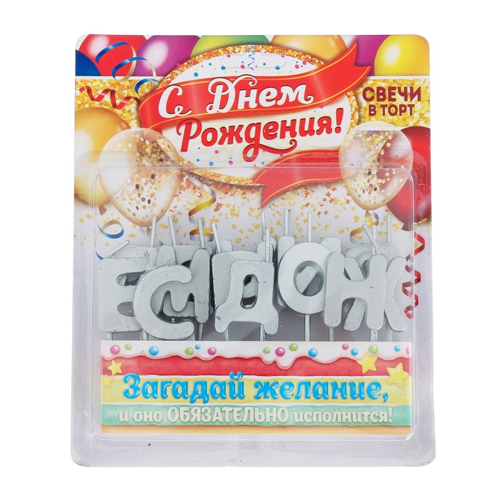 Набор свечей " С Днем Рождения", серебро, 14.5 х 17.5 см