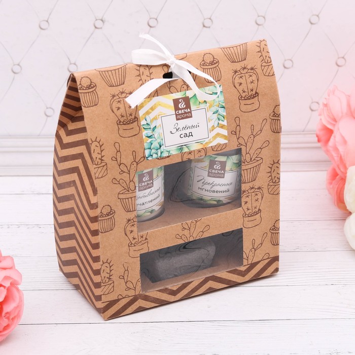 Набор свечей с кактусом "Зеленый сад", 14 х 17,5 см